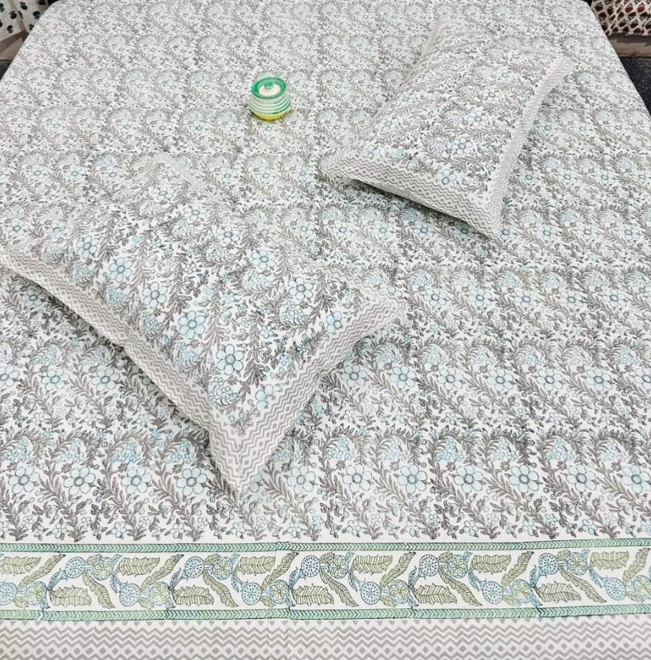 Pure cotton wooden hand block printed premium quality king size double bedsheet with two flapped pillow covers.