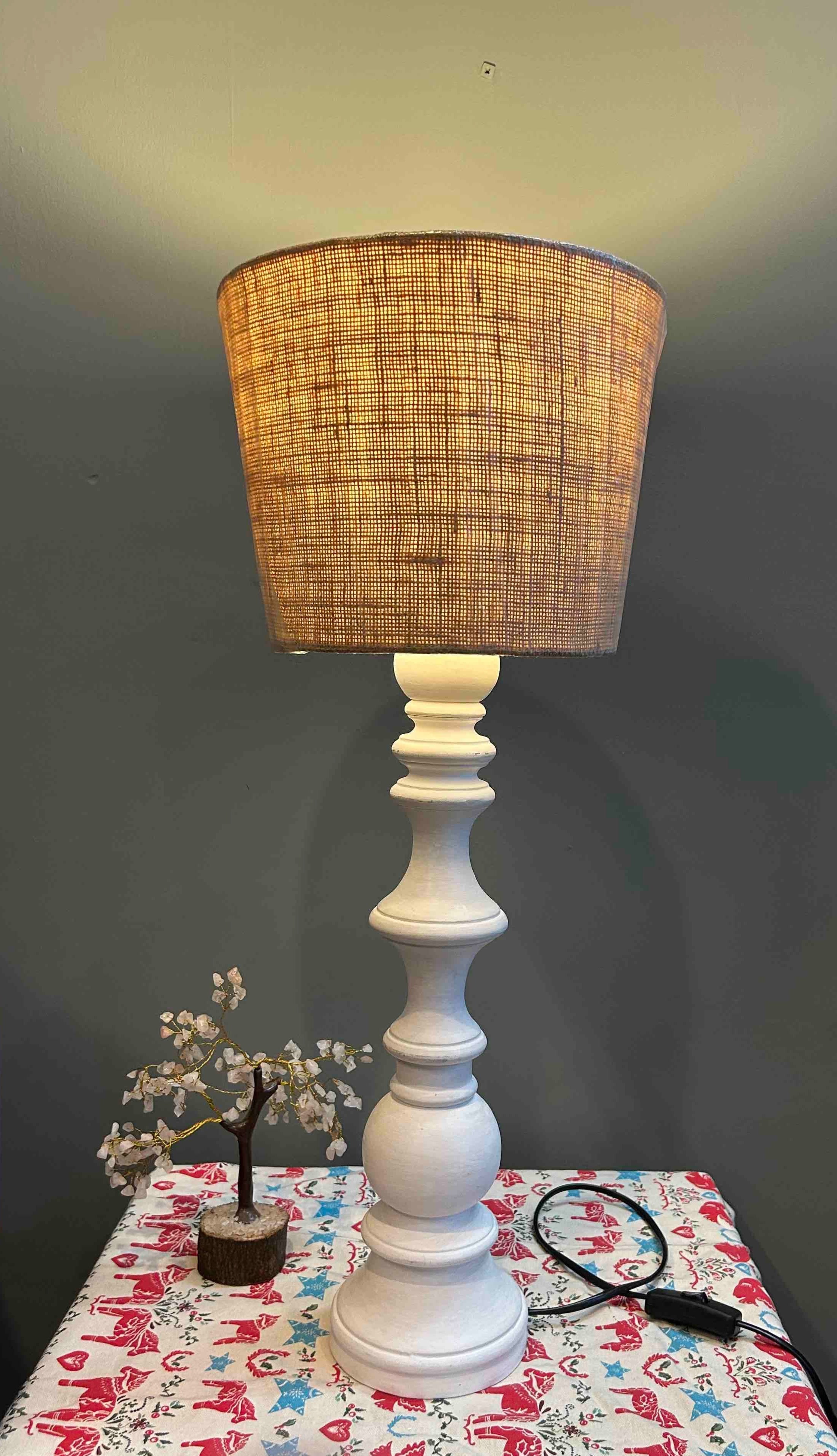 This unique antique table lamp features a rustic white finish and a classic design. Its timeless look adds character to any space. Its sturdy wood construction provides durability while its modern silhouette ensures a stylish look. Perfect for adding a traditional touch to any home.