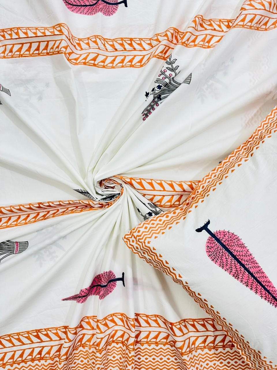 Heavy percale pure cotton handblock printed bedsheets with two pillow covers (95x108 inches)