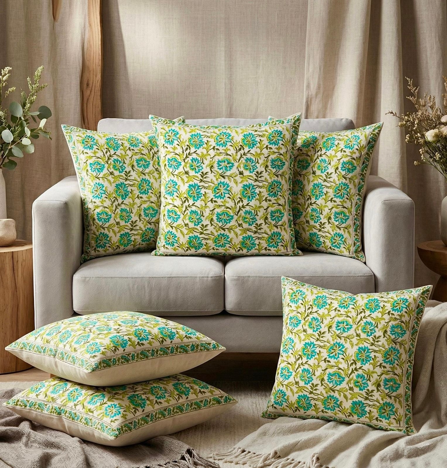 Pure cotton hand-block printed large sized cushion covers (24x24 inches set of 5)