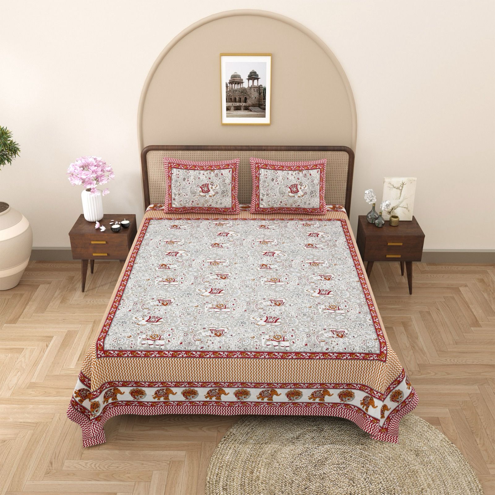 Pure cotton queen size bedsheet with two pillow covers (90x108 inches)