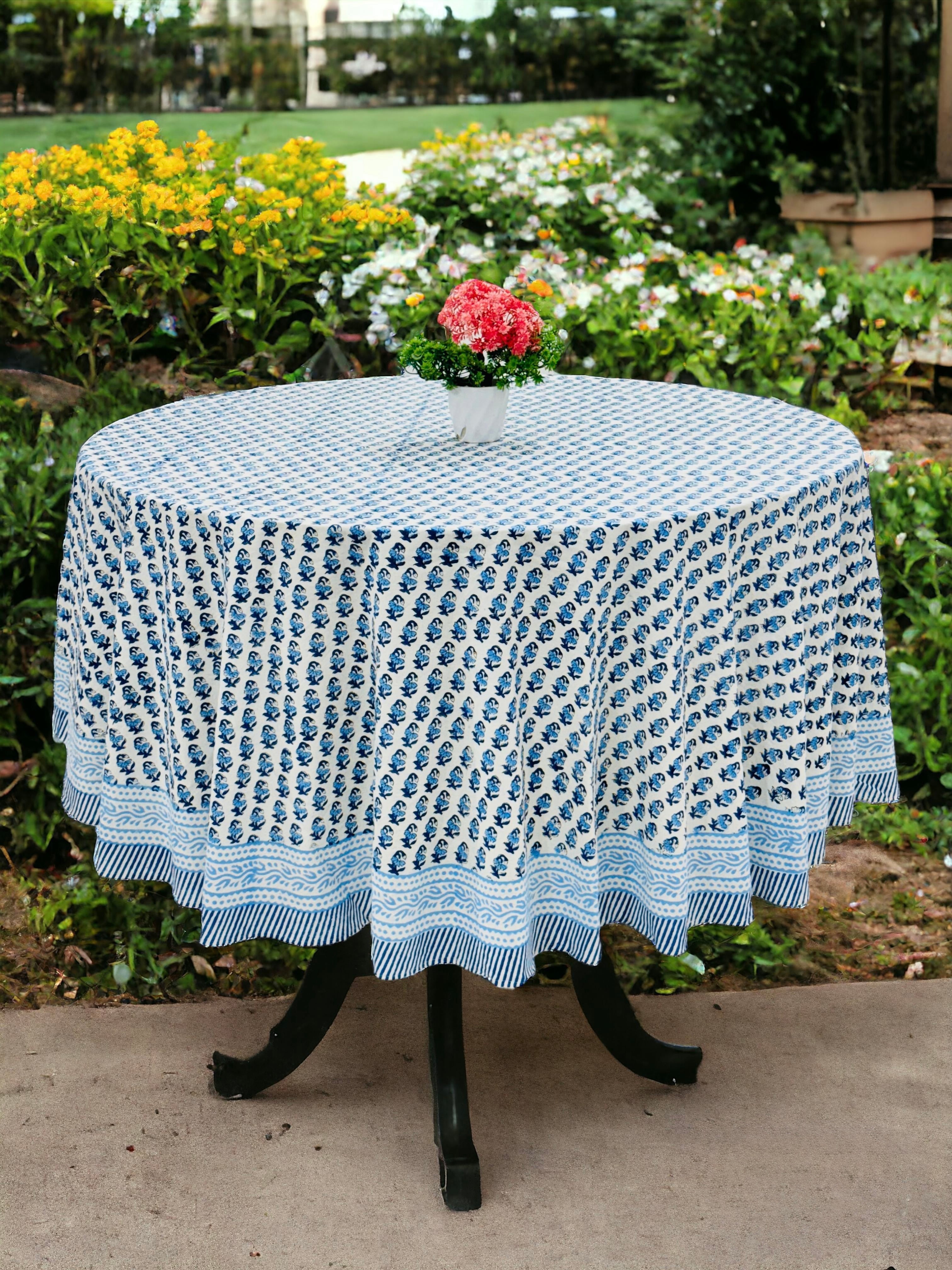 Pure cotton hand block printed round table covers for 6 seater dining tables (72 inches dia)