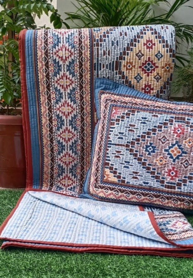 https://aarikadecor.com/products/pure-cotton-ikkat-quilted-and-reversible-bedcover-with-two-quilted-pillow-covers-90x108-inches-3