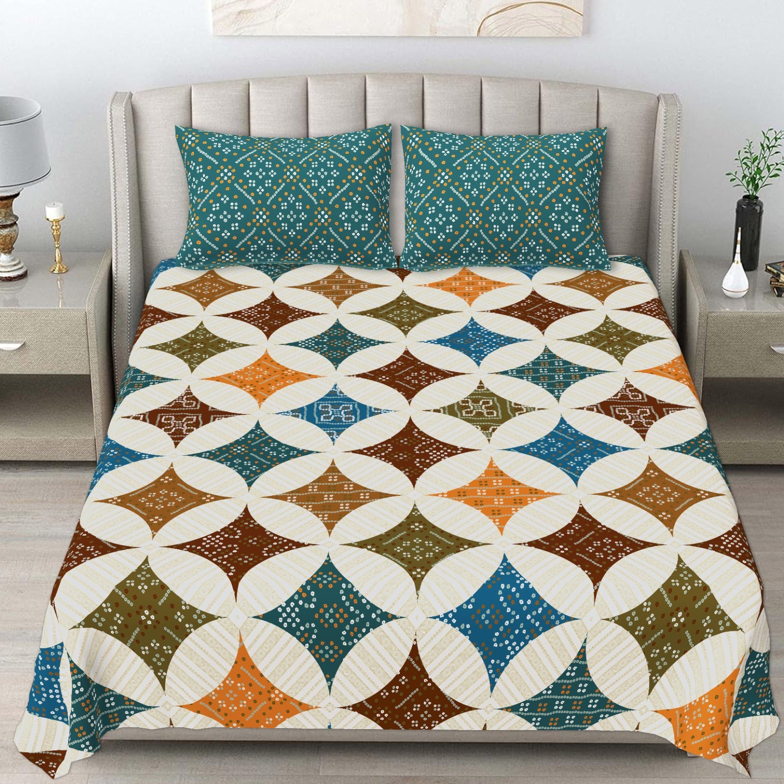 Pure cotton king size bedsheet with two pillow covers 100x108 inches