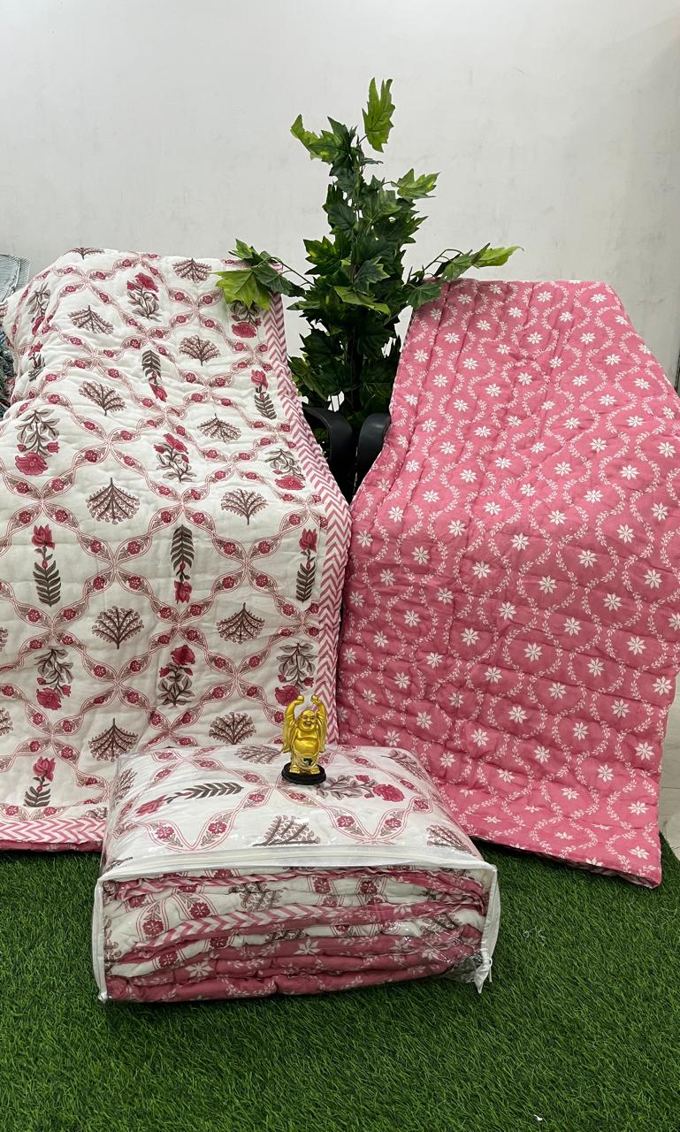 Pure mulmul cotton printed single reversible quilt are perfect for winters. These come in a set of 2 quilts made from high-quality mulmul cotton and feature a beautiful print providing warmth and comfort while also adding a touch of style to your bedroom decor.