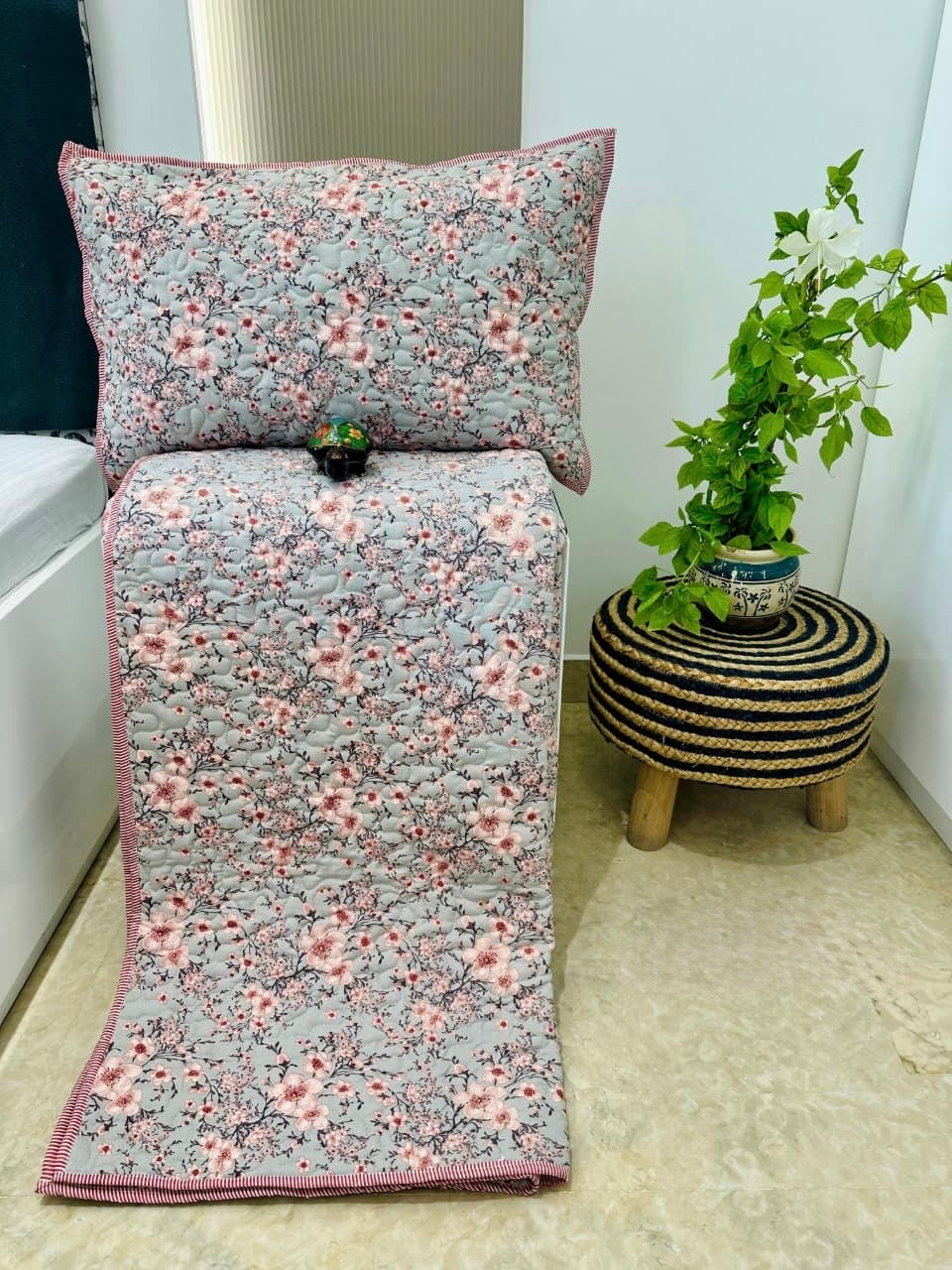 • Pure cotton paani jaal quilted reversible double bedcovers with 2 quilted pillow covers (90x108 inches)