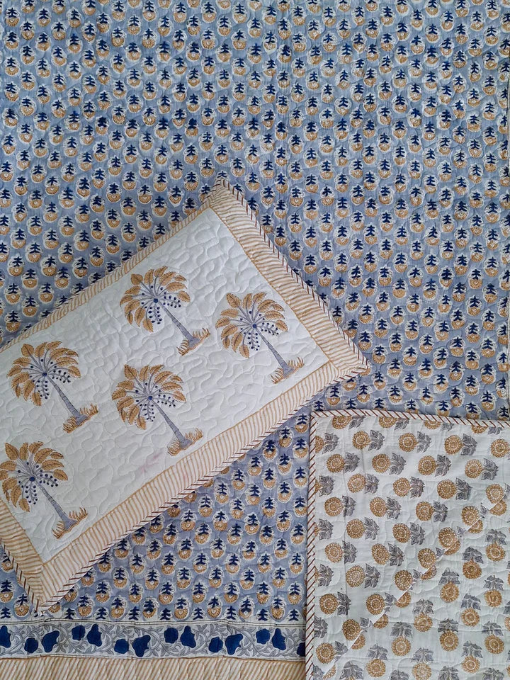 Pure cotton paani jaal quilted reversible double bedcovers with 2 quilted pillow covers (90x108 inches)