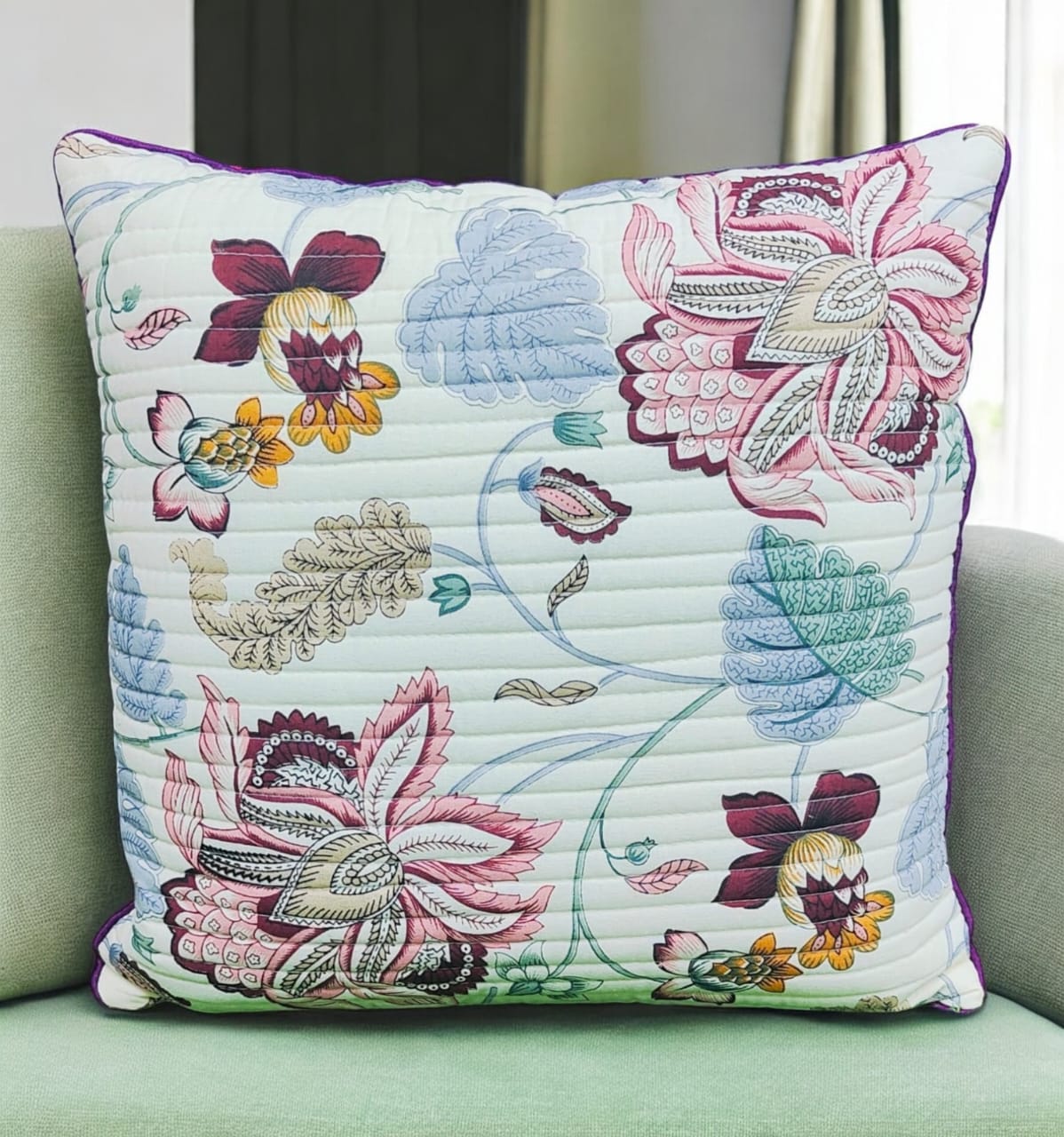 • Pure cotton printed quilted cushion covers 16x16 inches/ 40x40 cms (Set of 5)
