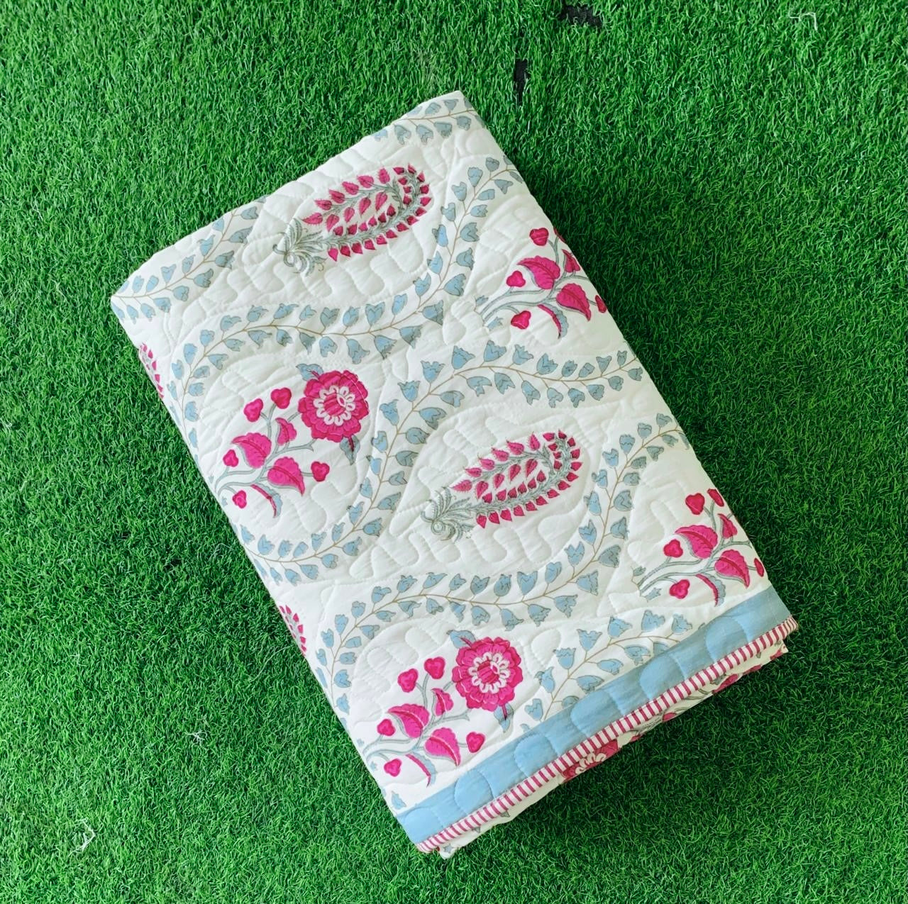 This pure cotton quilted single dohar is a perfect addition to your home decor. The paani jaal bharai quilting offers durability. These can also be used as single dohars.