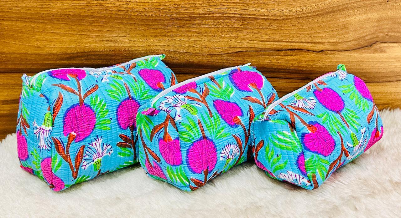 • Collections: Pure cotton quilted travel pouches (set of 3)