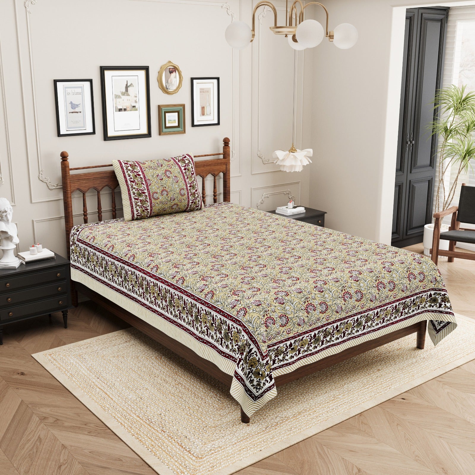 Pure cotton single bedsheet with 1 pillow cover pairs (set of 2)