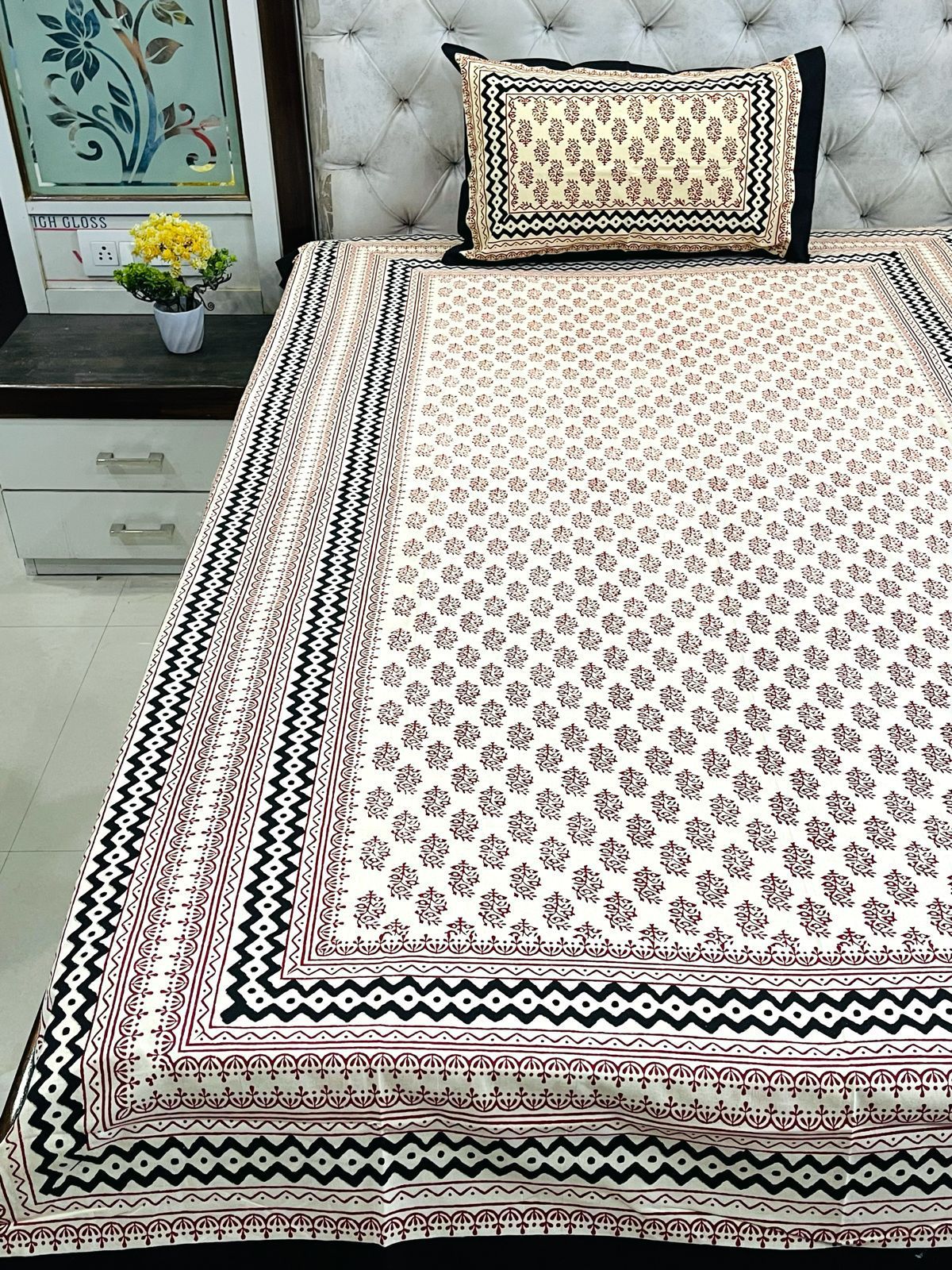 Pure cotton printed bedsheet with one pillow cover for sinle bed.
