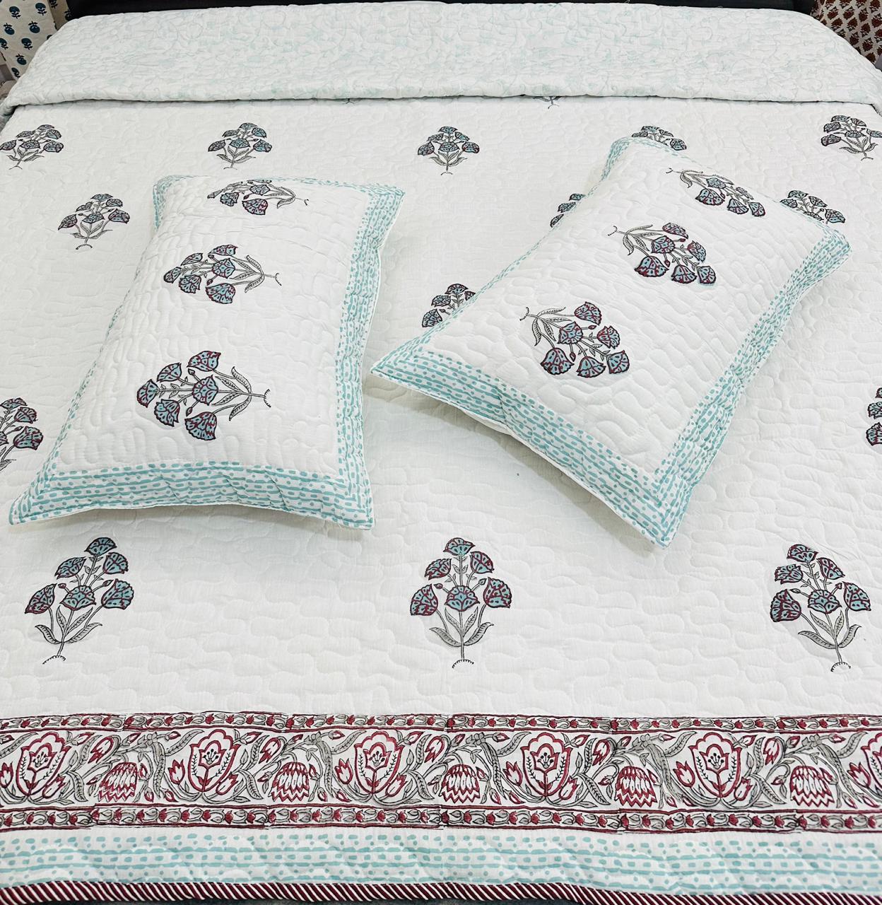 Pure cotton premium quilted double bedcovers with quilted two pillow covers (90x108 inches)