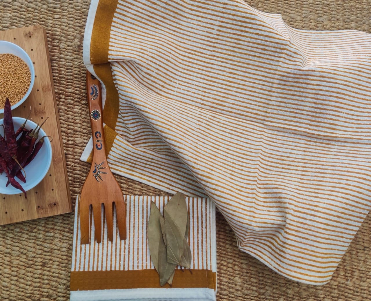 Pure waffled cotton block printed, highly absorbent, easily washable kitchen hand towels available in a set a 3