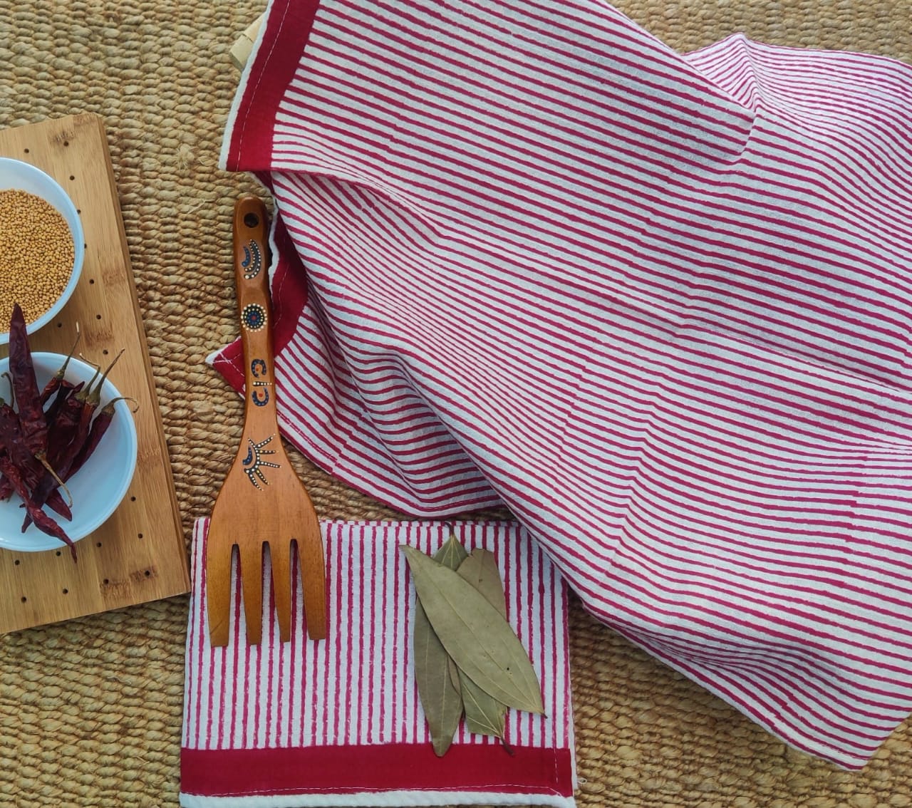 Pure waffled cotton block printed, highly absorbent, easily washable kitchen hand towels available in a set a 3