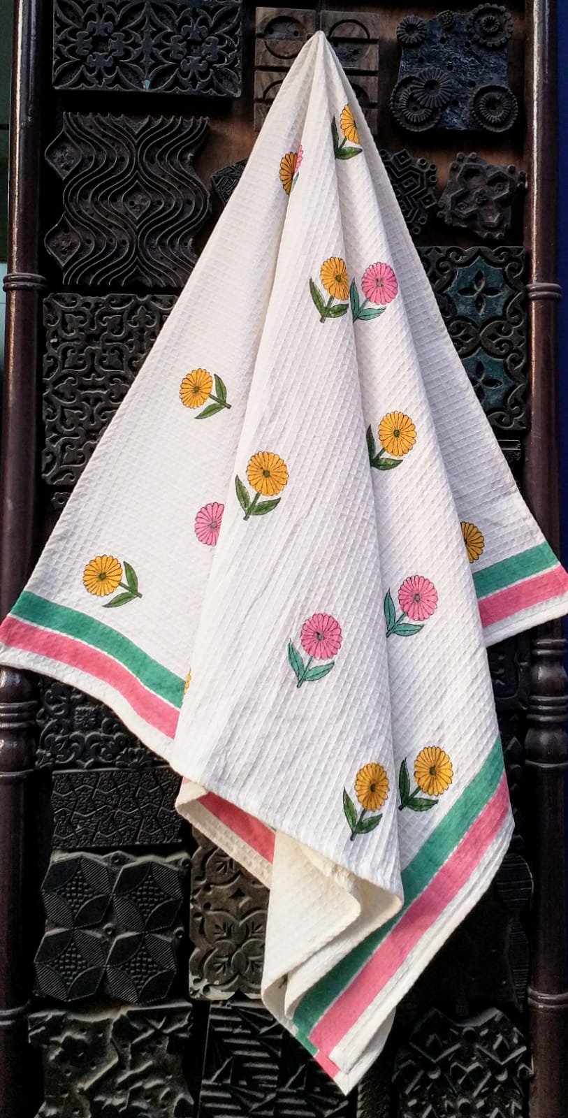 • Handblock printed waffled cotton bath towels - Size 30x60 inches